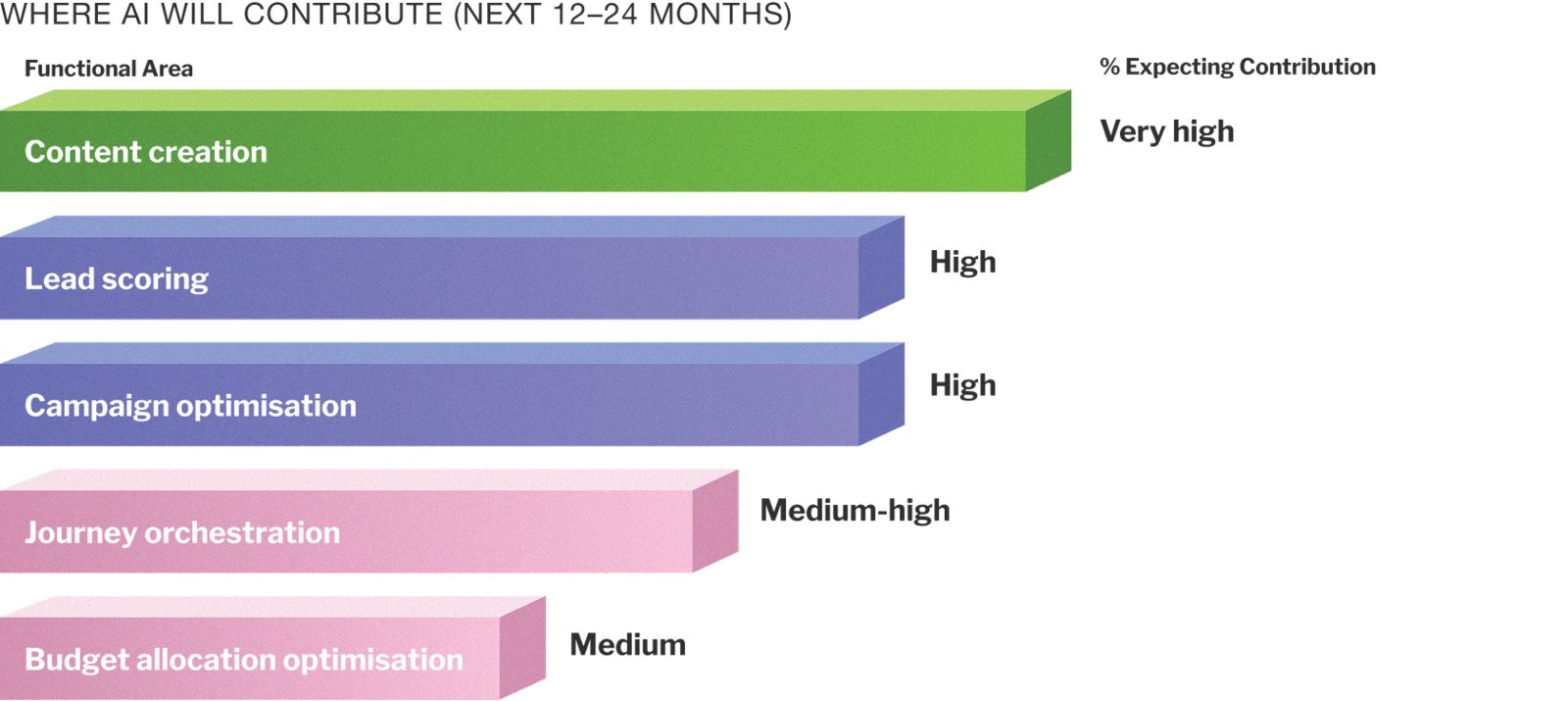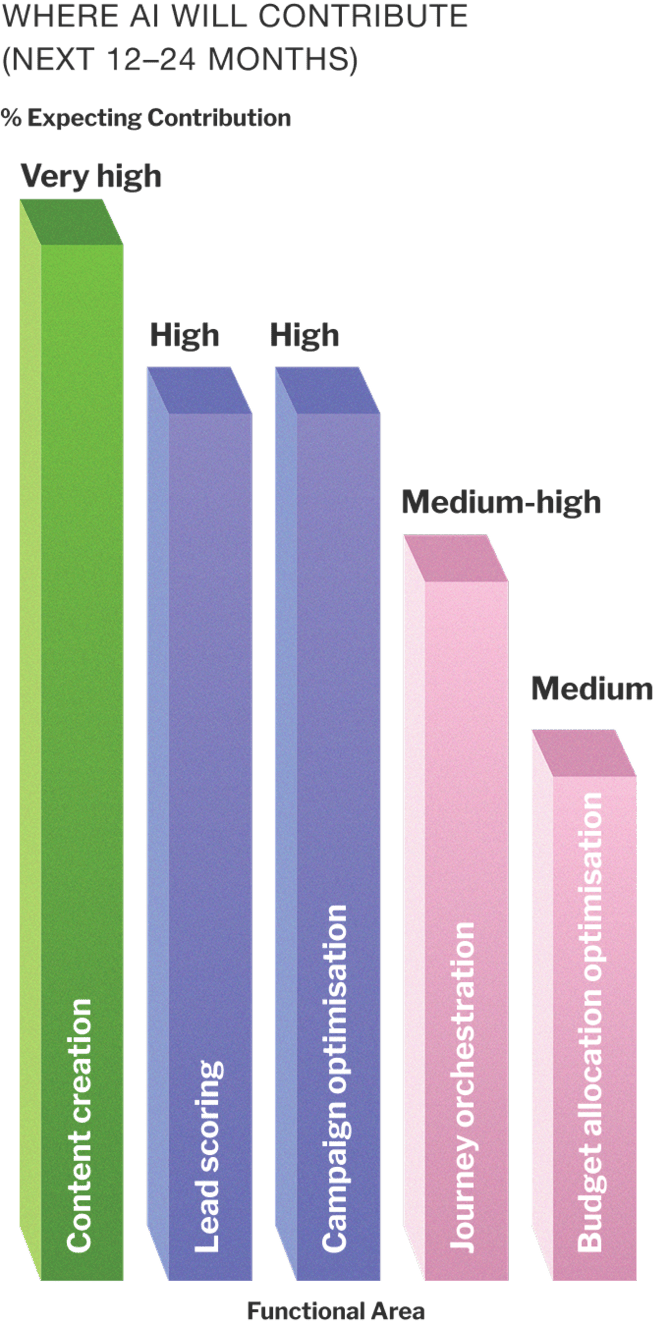 Marketers see AI touching every major function in the near term, particularly: